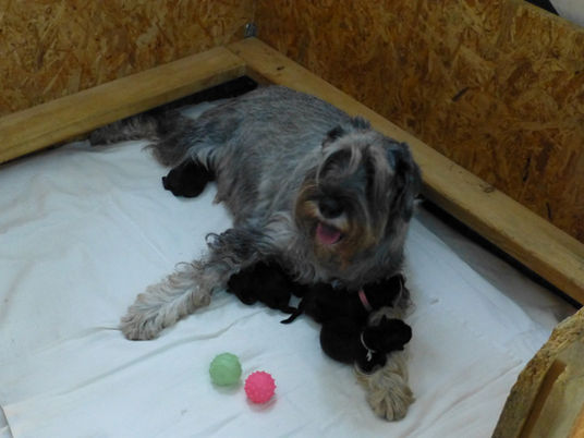 Dnes mezi 6:10 - 10:45 hod. se nám narodili 4 pejsci a 1 fenečka, Stázička i štěňátka jsou v pořádku a mají se čile k světu.